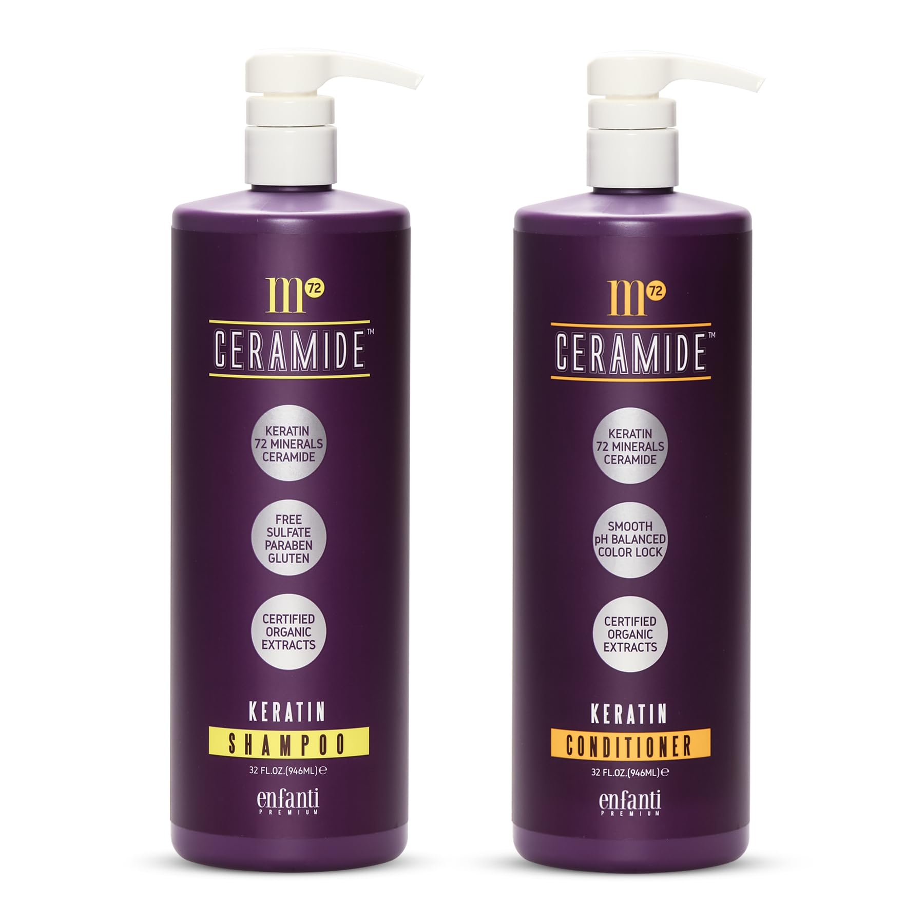 - NOURISHING + MOISTURIZING – Achieve stronger, healthier hair with M72 Ceramide Keratin Shampoo & Conditioner! Beneficial to those with damaged color-treated, dry or excessively oily hair, this soothes and strengthens scalp and roots to encourage healthy hair growth and maintain sleek, shiny hair strands while preventing split ends. With a 13 organic herb recipe that works to create smooth, shiny, frizz-free hair, this is packed with super rich essential nutrients to nourish and moisturize hair.