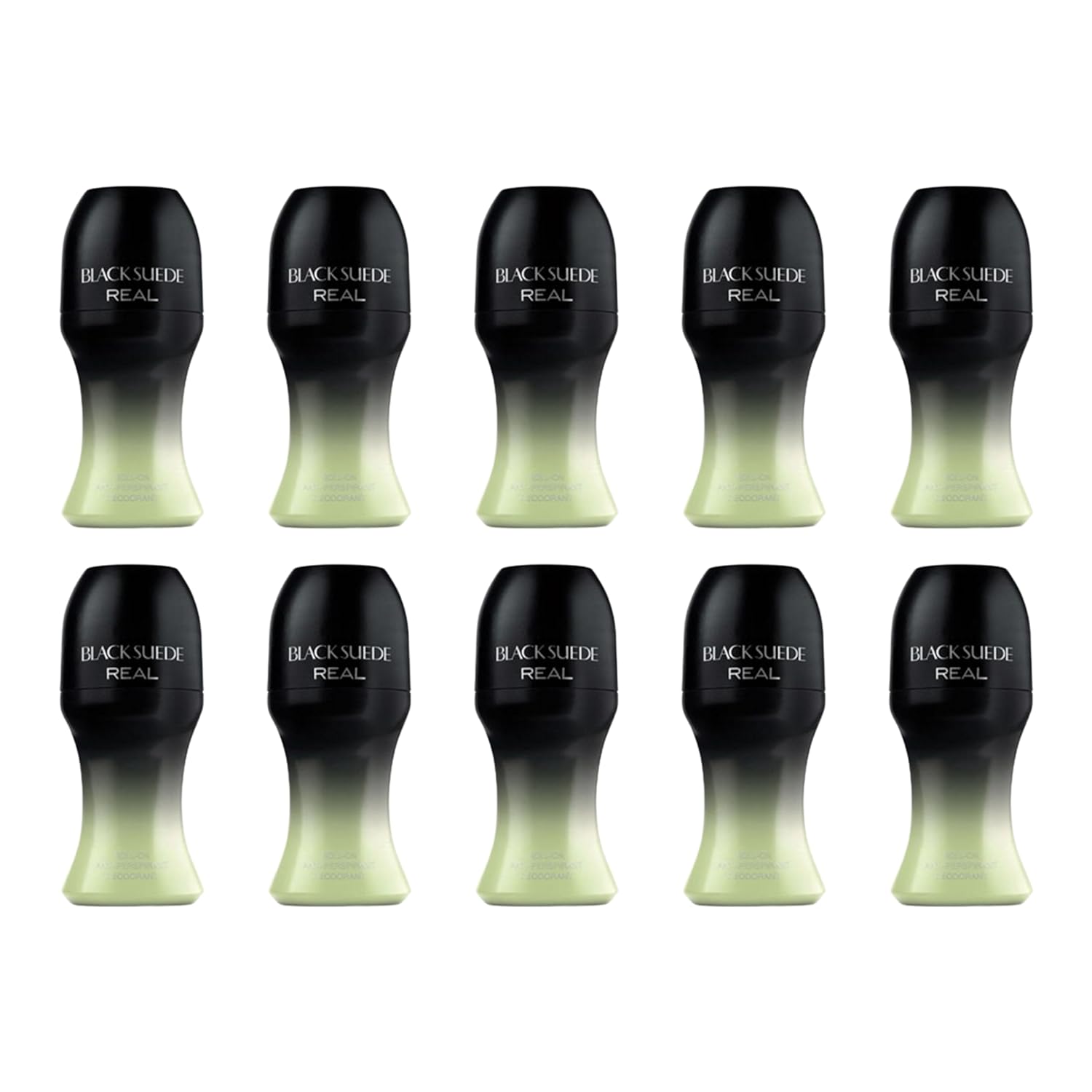 Black Suede Real Antiperspirant Roll-On Deodorant 50 ml, For Men, RELEASE YOUR CHARISMA! Roll-on deodorant in the scent of Black Suede Real perfume, Provides protection all day long (Pack Of 10)