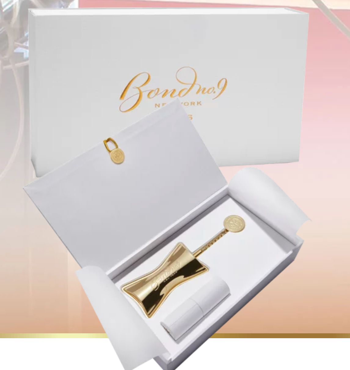 The Bond No.9 Lipstick Set includes a gold keepsake lipstick plus an additional refill. Your set arrives in a luxe white gift box that closes with the golden token charm.