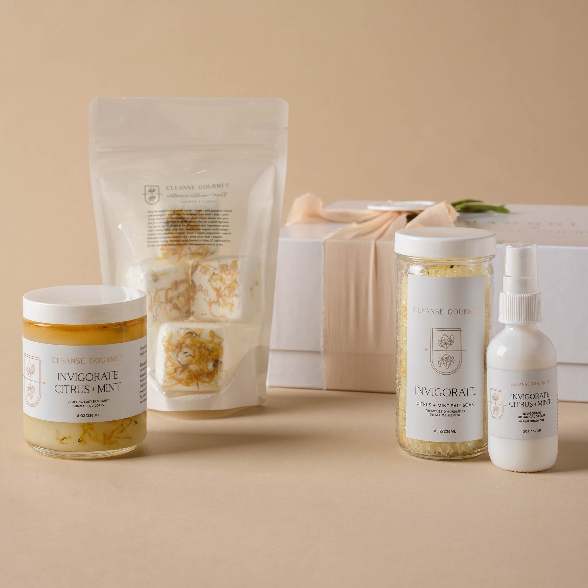 For when a moment of pause is in order: The Cleanse Gourmet Bath Gift Set is custom curated with Cleanse Gourmet, joining beautiful products with elegant packaging. Complete with a body scrub, bath soaking salts, shower essence mist, and large fizzing cubes, this set includes everything you need for a restful reset. All products are small-batch blended and artisan-made in South Carolina.