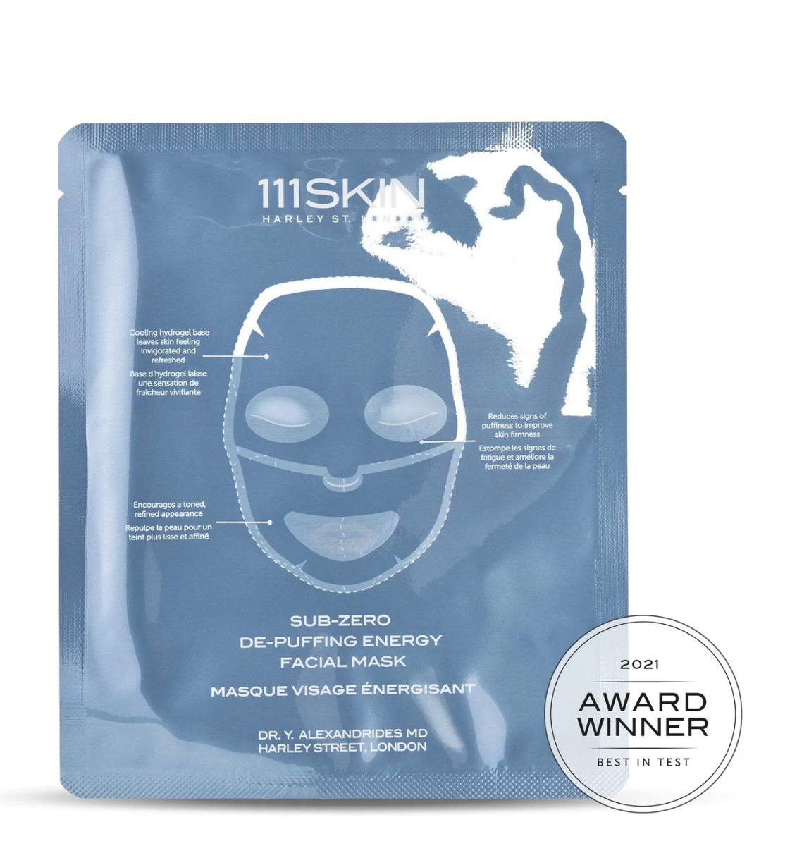 The stimulating, refreshing Sub-Zero De-Puffing Energy Facial Mask is inspired by the science behind cryotherapy, and like cold on the skin, effectively de-puffs your morning face. The two piece, full face Hydrogel mask is infused with potent ingredients, like Caffeine to increase blood microcirculation, and Dr Yannis’ multi-functional formula with a powerful Tetrapeptide, that depuffs and tightens while simultaneously inhibiting collagen breakdown, thus minimising the appearance of ageing.