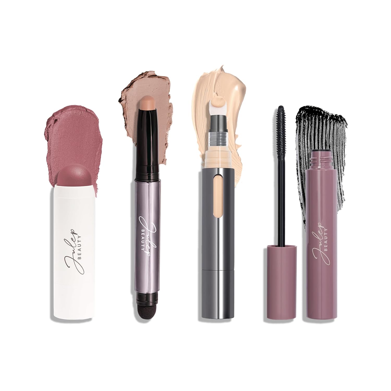 Julep Everyday Easy 4 Piece Kit with Eyeshadow 101 in Putty Matte, Length Matters Lengthening Mascara, Skip The Brush Cream to Powder Blush in Muted Mauve, & Cushion Complexion Concealer in