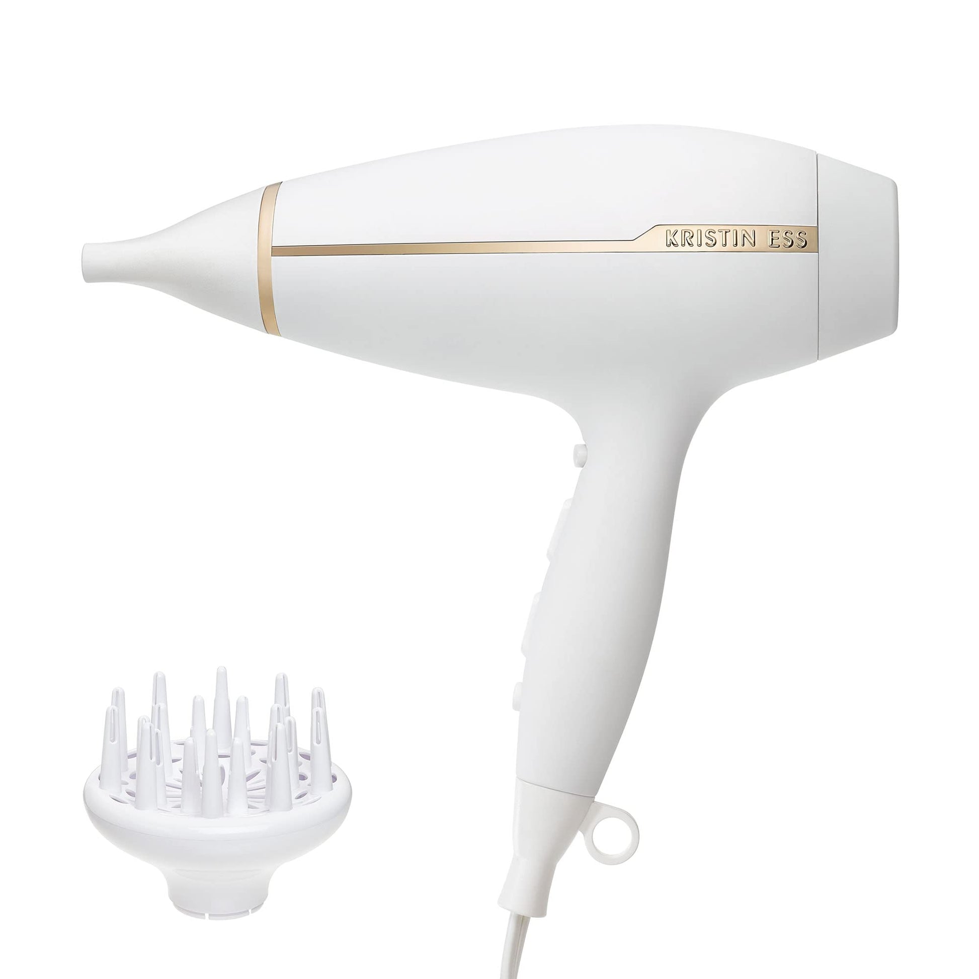 Details: The Kristin Ess Hair Ionic Professional Blow Dryer is a lightweight, powerful blow dryer that gets the job done quickly and efficiently while keeping your hair healthy and hydrated. This blow dryer features Kristin's favorite ratios of heat to wind, customizable ionic options and a cool shot button to set your favorite styles.