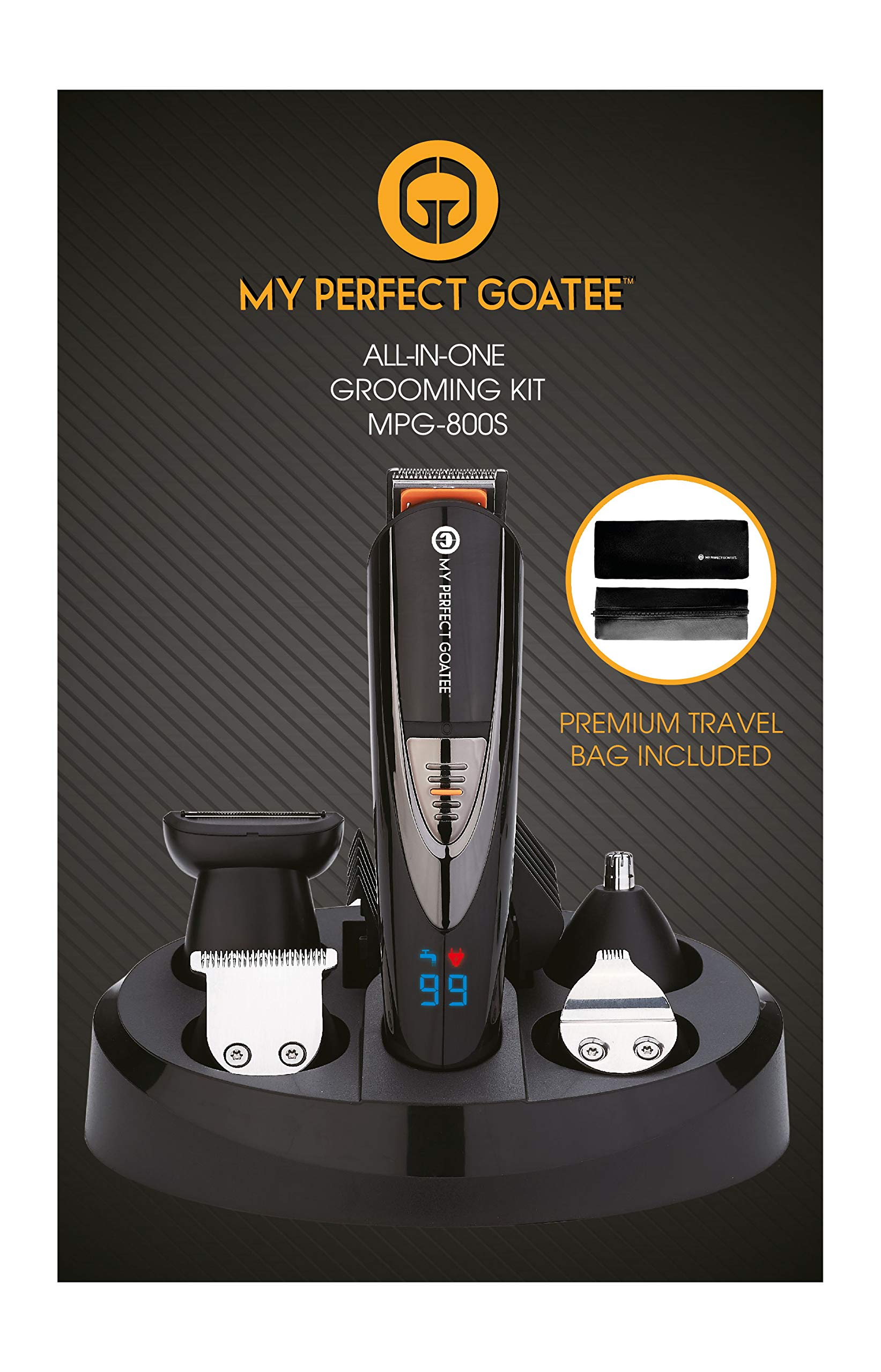 My Perfect Goatee®️ 13-in-1 Mens Grooming Kit - LED Display Beard Trimming Kit with Travel Bag, Charging Stand, & More - Waterproof, Cordless Electric Trimmer for Nose, Body, & More – Ideal Gift Set