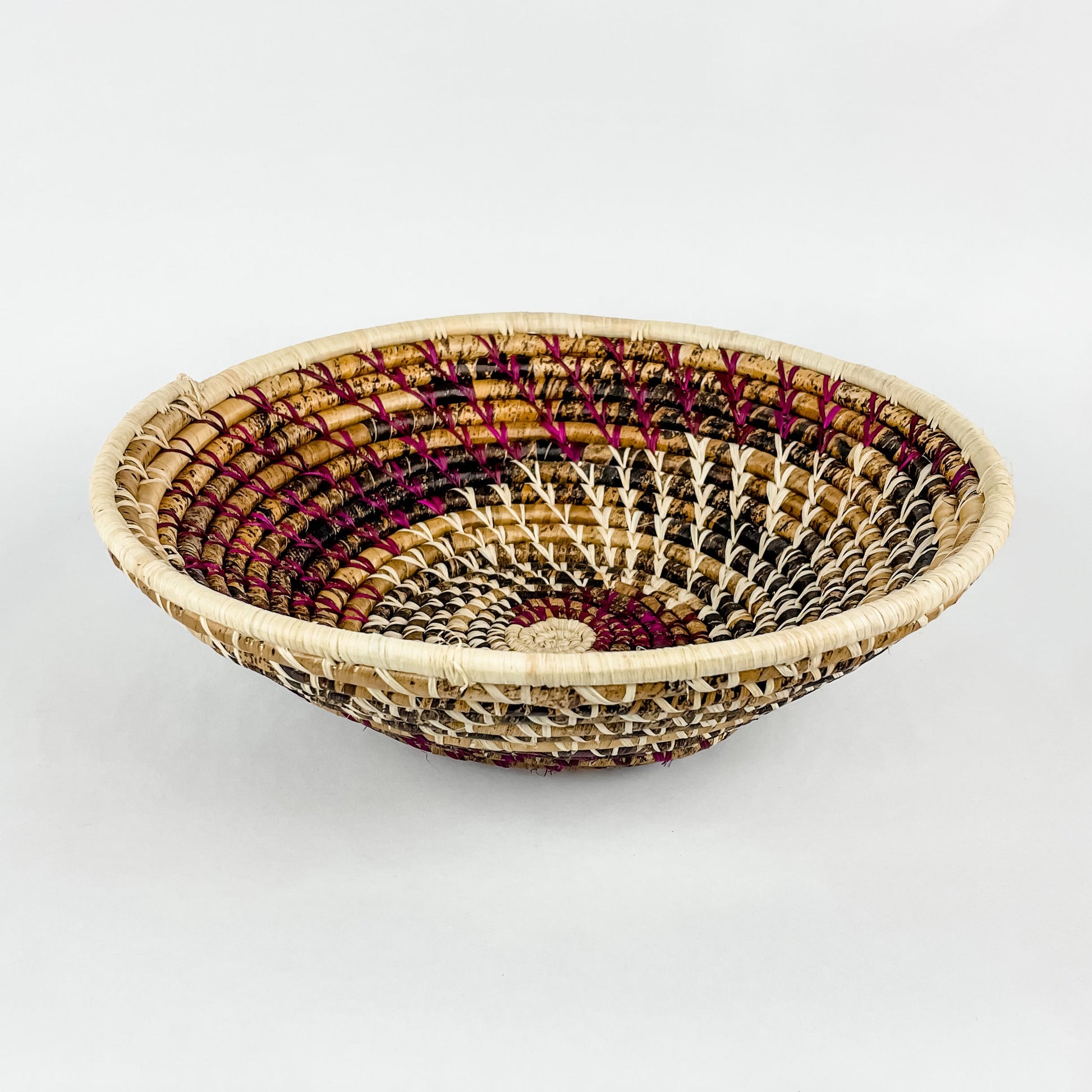 Grass-Woven Basket, Plum/Natural Spiral